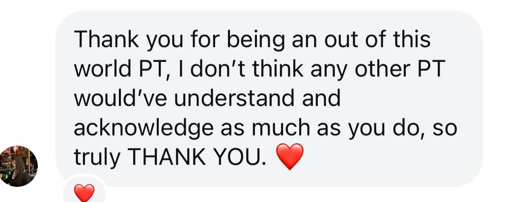 "THANK YOU for helping me get in the best shape of my life!You don’t just focus on RESULTS, you also focus on making it FUN.Your attention to detail and how you are so mindful and careful around people’s physical concerns is unreal! Not only am I achieving my goals, but other aspects of my physical health are THANKING YOU for the coaching sessions you’ve been giving me!Want to start your fitness journey and FINALLY see the results you want, but don’t know where to start?Pop that gal a follow, coz she’s brilliant. For further info, DM her 😉”